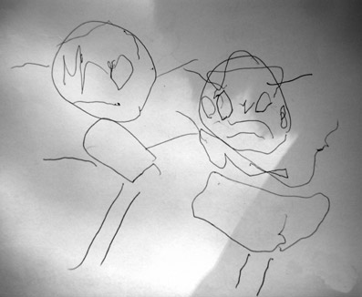 | Ik heb tegenwoordig een soort knop in mijn hoofd. Zodra ik daar binnenkom zet ik die om. Dan dringen de opmerkingen niet tot mij door. Duuk liep namelijk achter met praten. maar zijn fijne motoriek was dan weer uitstekend. En dat klopt dan want als je niet goed kunt praten is je motoriek weer wel heel goed. Zeiden ze. Maar hij moest maar naar de logopedist. Hij is 2!!!! Een paar maanden later ging Duuk opeens praten. Én zijn motoriek is nog steeds uitstekend. En als je zegt dat het goed gaat vragen ze nog drie keer, já? gaat het echt goed? Die tekening vind ik trouwens gewéldig! Goed man! |