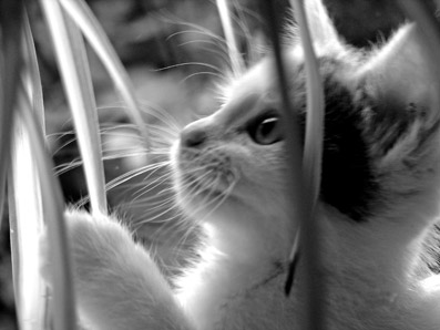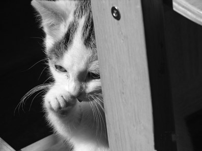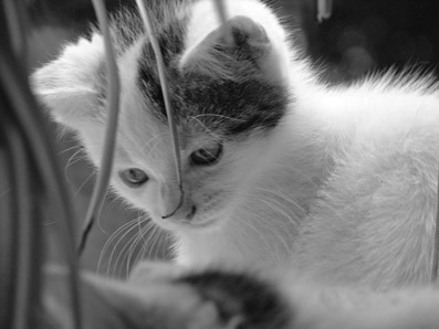 | Onze oude katten waren in die zin fotogeniek dat ze nog stil bleven zitten. Bij de jongste telg moet je een goeie flits hebben wil je die als uitgesmeerde vlek op de foto hebben. :-) Erg mooi gedaan, je kan ze bijna aaien. |