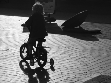 | stoerrr !!! Peuter wil maar niet met z'n voetjes op de trappertjes grrr en dan hebben we 't nog over een 3wieler... maar ja... mss als ik 'm ook eens zo'n ijsje beloof/doe... hahaha [waterijs is t enige wat ie kent] wie wéét... |