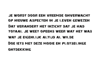 | Ik lees geen horoscopen. Want zo simpel is het leven niet. Het zou heel goed kunnen zijn dat het waar is. Elke dag KAN er iets gebeuren dat je leven een andere wending geeft. Maar zoals zoveel dingen moet je dat uit je gedachten zetten. En op een dag gebeurt er misschien wel iets. Nou, dat merk je dan wel. Lekker doorleven is het parool. |