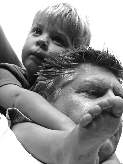 | Wat een lieve vader-zoon foto. En dat voetje! Zo nonchalant hangend zodat papa min of meer oherkenbaar is gebleven :) |