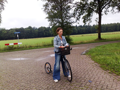 Het was eerst even zoeken daar in de middle of nowhere, maar dan heb je ook wat. Namelijk een jaloers makend Pipi Langkous huis met sjitterende tuin, twee mensen zonder al te beste conditie waarvan eentje geen, twee steps, eentje met snoezig mandje voorop en die was voor mijn tas, een route van een kleine 12 (!) kilometer en last but not least: regen.